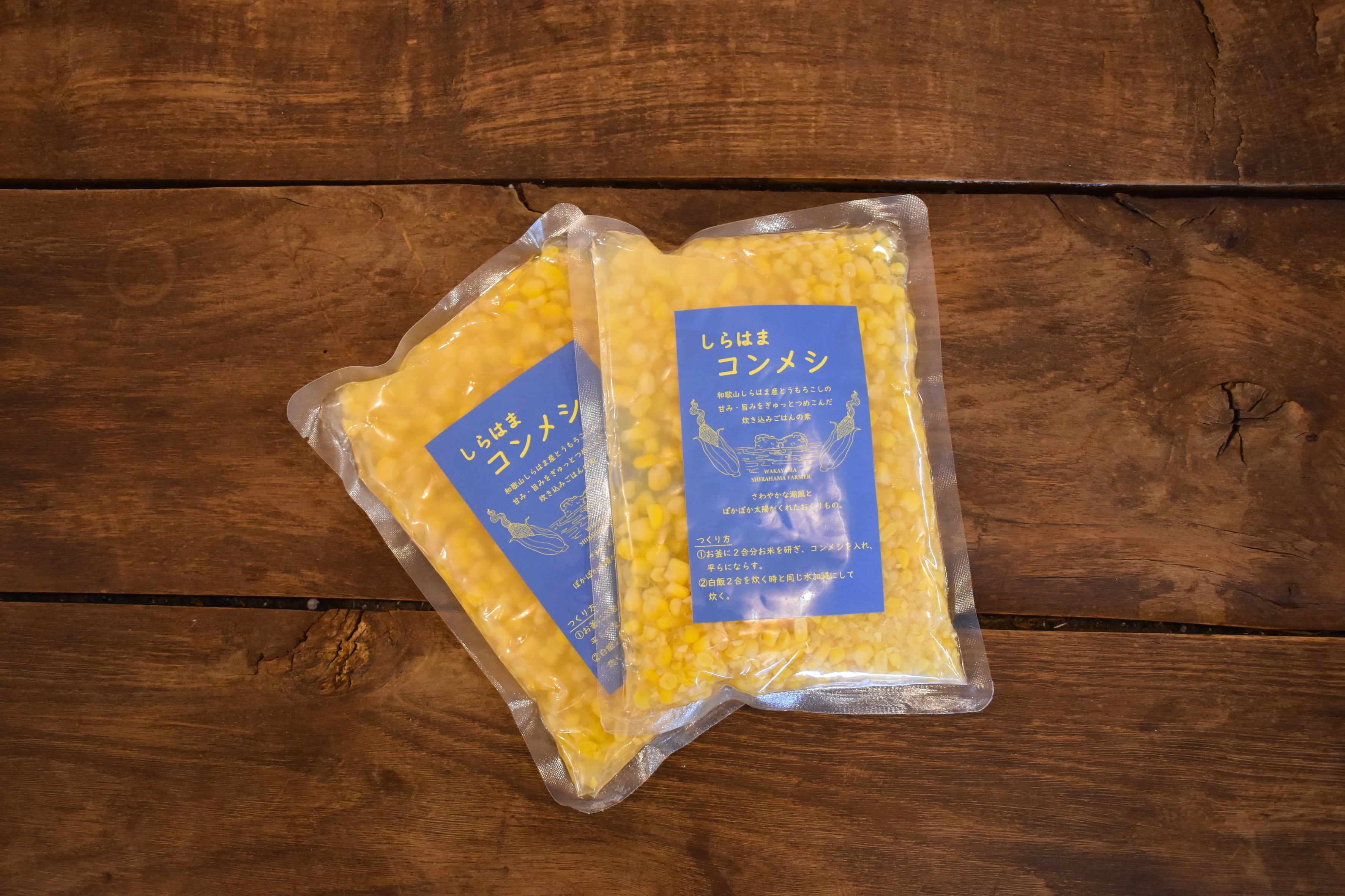 わかやましらはま農家で採れたとうもろこし、水、塩のみを使った炊き込みご飯「しらはまコンメシ」。しらはまの初夏の味をぜひご賞味ください!