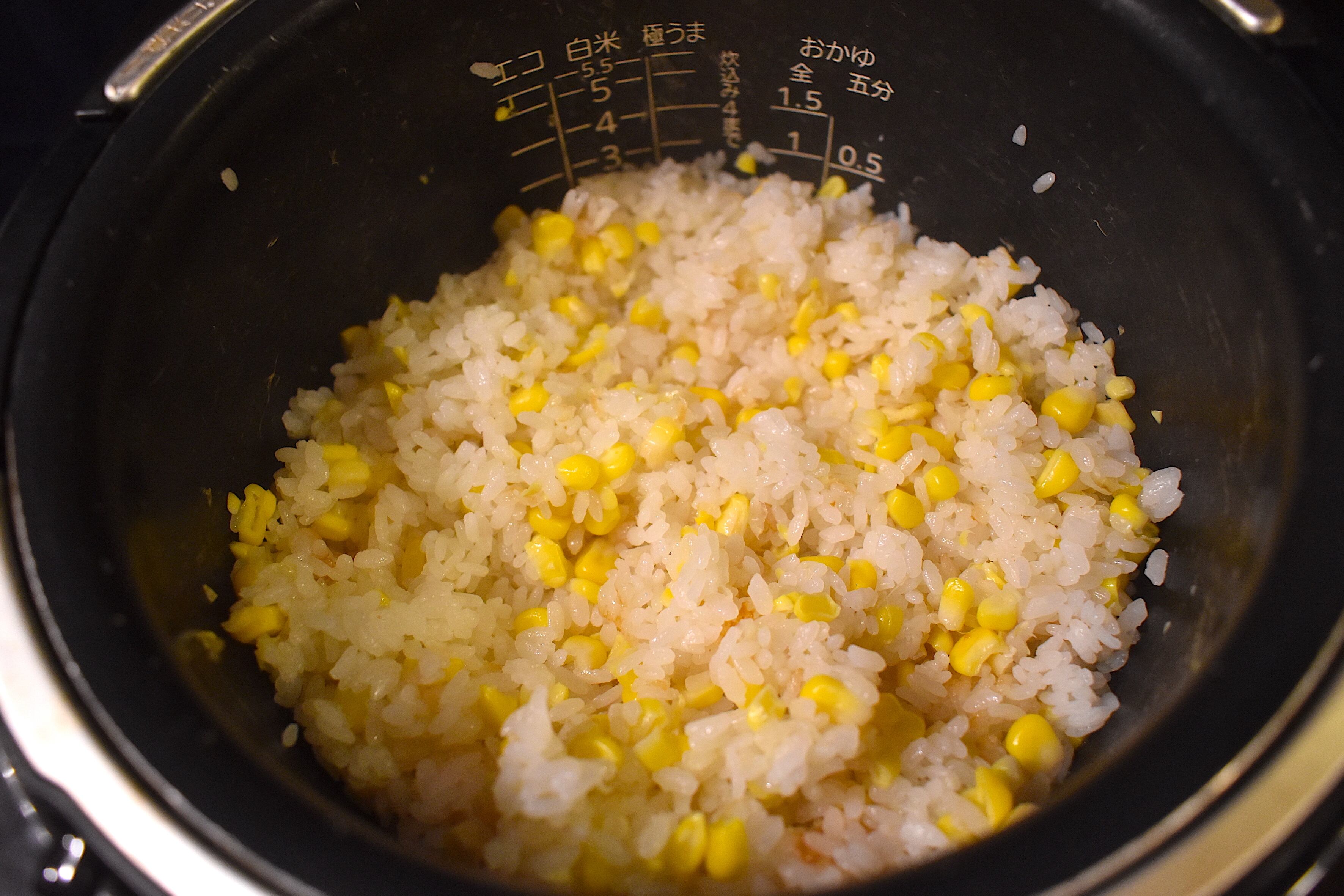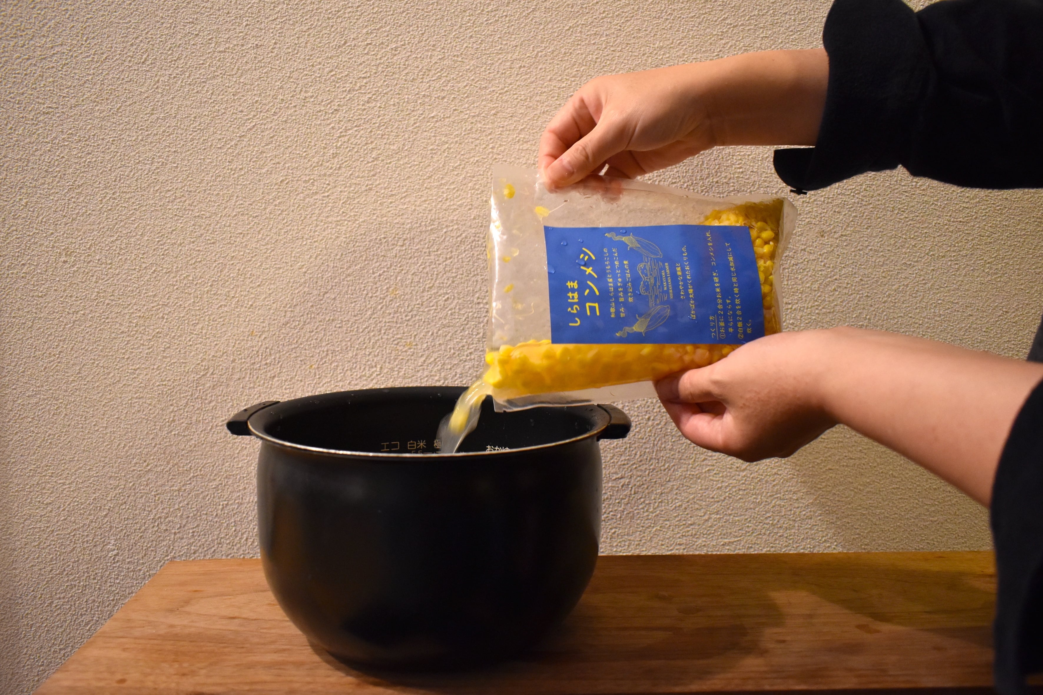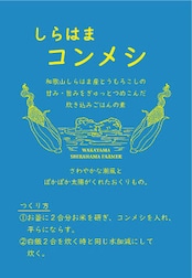 わかやましらはま農家で採れたとうもろこし、水、塩のみを使った炊き込みご飯「しらはまコンメシ」。