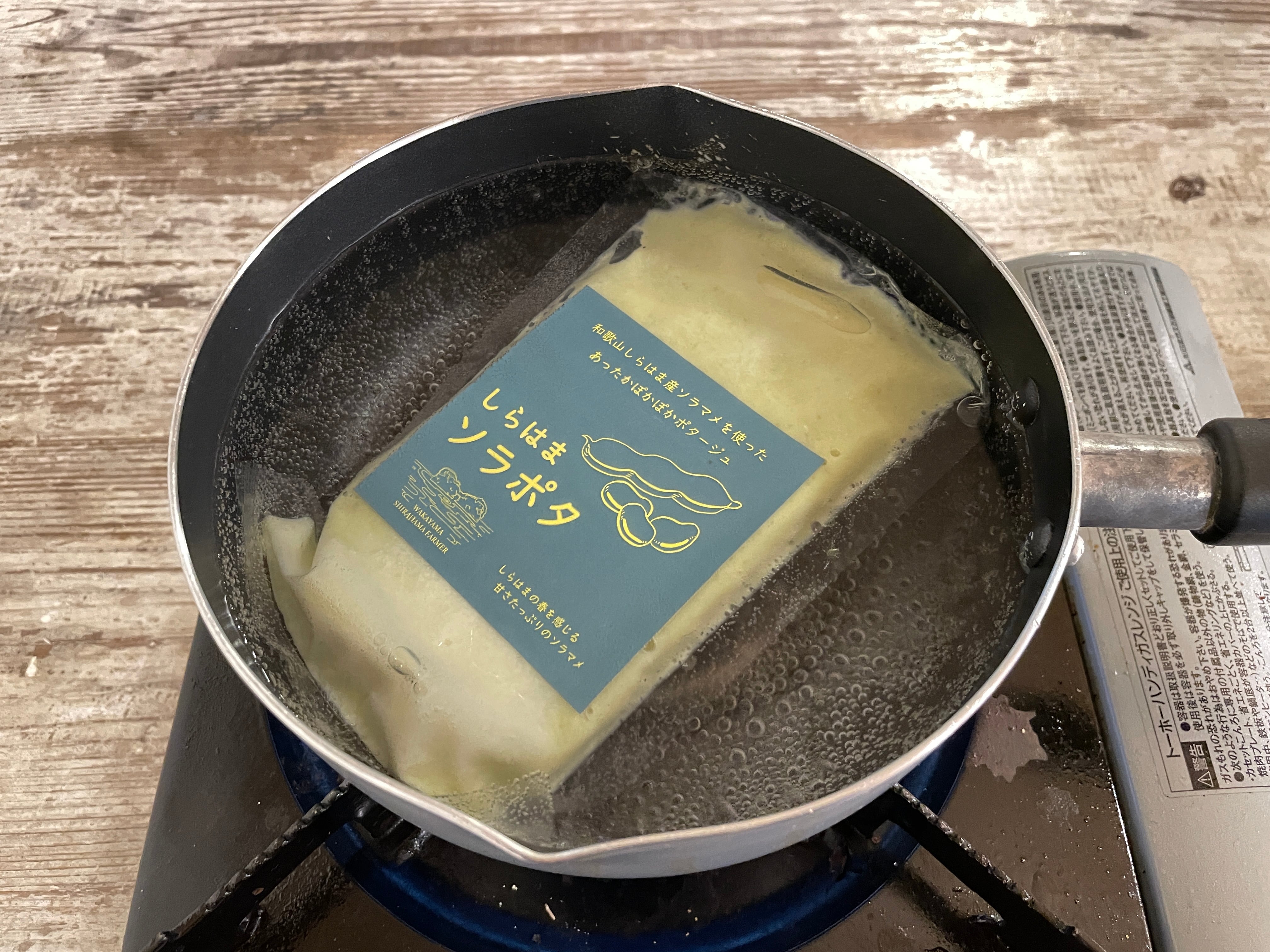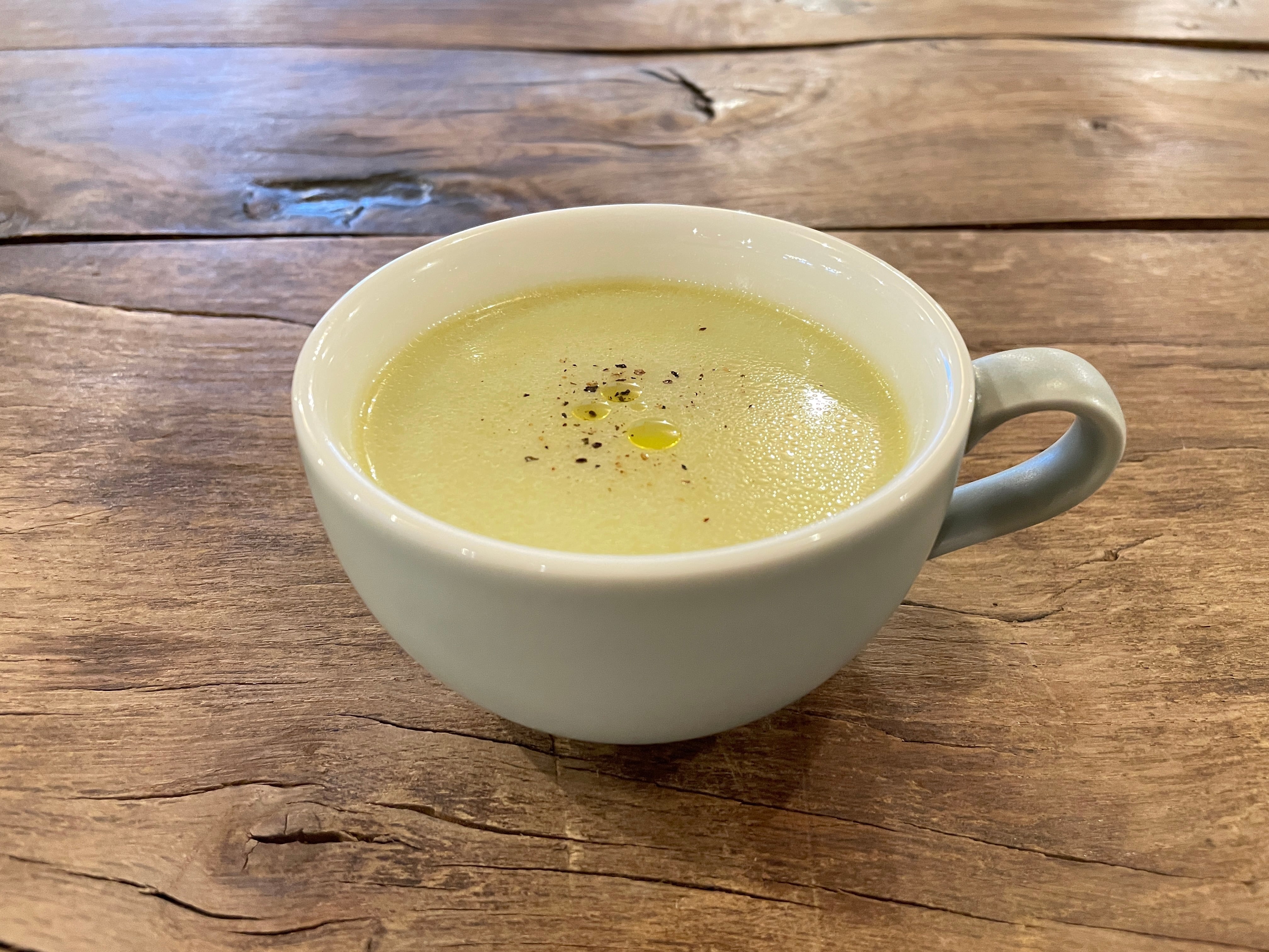 わかやましらはま農家で採れたソラマメを使ったポタージュスープ。